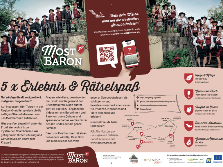 Denn uns Mostbaronen ist eines besonders wichtig: Dass Groß und Klein wieder den Wert unserer Streuobstwiesen als schützens- und bewahrenswerten Lebensraum für Pflanzen, Menschen und Tiere erkennen und erleben!